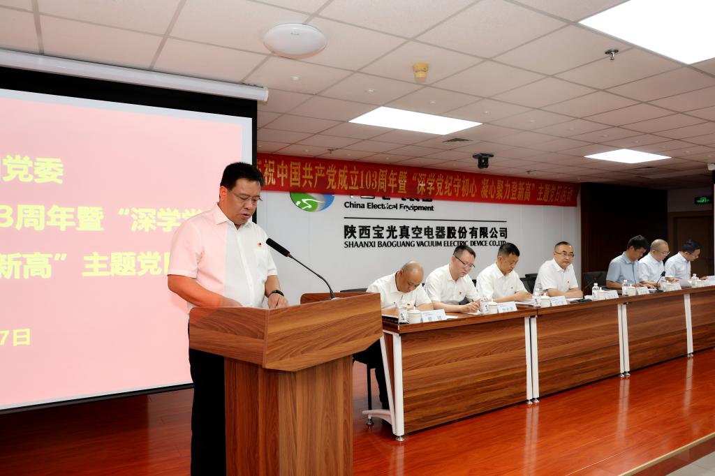 主題黨日活動分為宣誓詞,守初心;共交流,傳薪火;樹典型,勇擔當;上黨課,助發展四個環節。寶光集團、西電寶雞電氣、寶光股份黨委委員、班子成員出席活動。主題黨日活動由寶光集團黨委副書記、紀委書記、工會主席姚書勤主持。