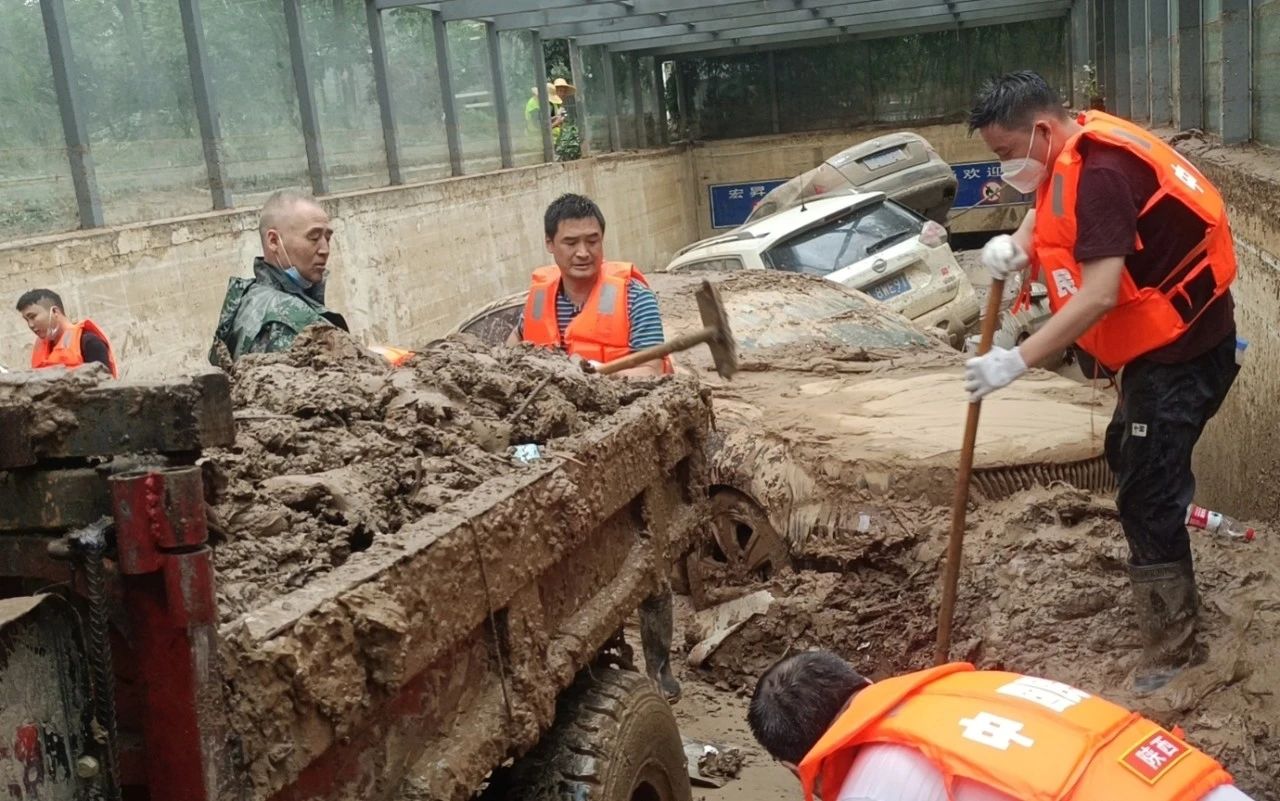 志愿者們前往受災嚴重的小區,協助小區居民進行開展搶險救災活動。當天雖然下著雨,但志愿者不避風雨,他們穿著雨鞋,手拿鐵锨,一鏟一鏟將淤泥鏟到拖拉機上,地面在志愿者們的努力下終于被清理干凈,汗水和雨水澆透了他們的衣裳,他們卻不叫一聲苦,不喊一聲累,在他們不懈努力下,泥漿一點點地褪去,露出了水泥地面,為道路通行和小區居民的正常生活提供了便利。
