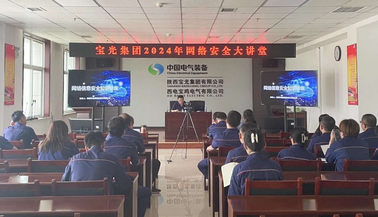 為進一步提升廣大職工網(wǎng)絡(luò)安全應(yīng)用能力,加強員工網(wǎng)絡(luò)安全意識,普及網(wǎng)絡(luò)安全知識,營造安全、健康、文明的網(wǎng)絡(luò)環(huán)境,按照網(wǎng)絡(luò)安全宣傳周活動安排,9月12日,寶光集團舉辦了2024年網(wǎng)絡(luò)安全大講堂活動,寶光集團(西電寶雞電氣)副總經(jīng)理成鵬志出席會議并講話。寶光集團、西電寶雞電氣所屬各部門負責人、業(yè)務(wù)骨干和信息員參加會議,寶光股份、寶光智能等各業(yè)務(wù)單元相關(guān)負責人視頻參會。