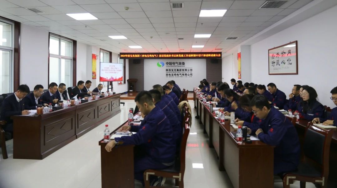 為深入貫徹黨的二十大和黨的二十屆三中全會精神,進一步加強中層干部隊伍建設,提升中層干部的執行力,激發公司內在活力,提升企業管理水平,落實全面從嚴治黨有關要求,全面、客觀、公正、準確地考核干部政治業務素質和履行崗位職責的情況,促使全體干部更好地謀劃2025年工作思路,研究創新舉措,助力企業高質量發展。12月20日,寶光集團黨委及所屬企業召開了2024年度基層黨組織書記抓黨建工作述職暨中層干部述職述廉會。在寶光集團黨委、西電寶雞電氣黨委2024年度基層黨組織書記抓黨建工作述職暨中層干部述職述廉會上,寶光集團(西電寶雞電氣)黨委書記、董事長謝洪濤出席會議并做總結講話,對2025年工作提出新的期望和要求。寶光集團(西電寶雞電氣)黨委副書記、總經理孫博主持會議并就落實會議精神提出具體要求。
