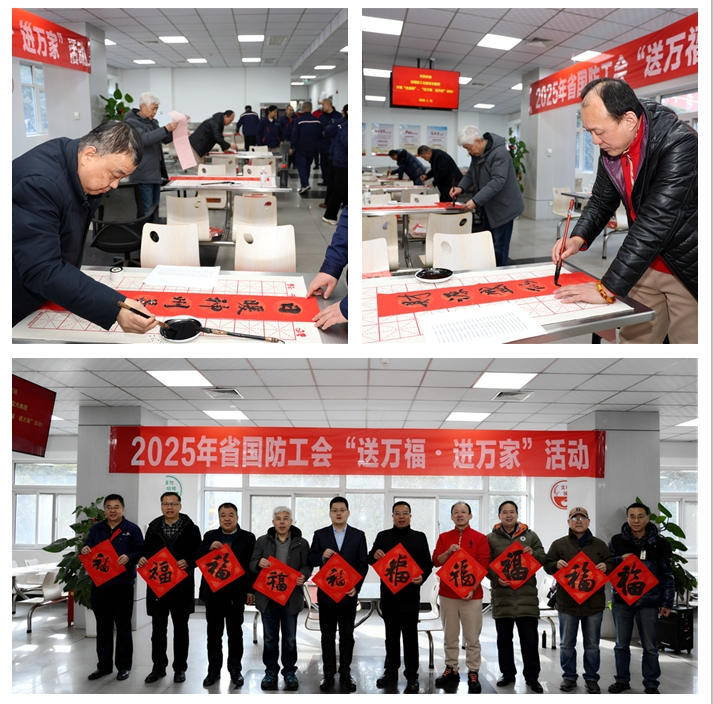國(guó)防工會(huì)靳海斌副主席致辭,他表示“送溫暖”“送萬(wàn)福·進(jìn)萬(wàn)家”是工會(huì)組織在重大節(jié)日向廣大職工送溫暖的重要內(nèi)容,福文化是中華民族的重要組成部分,是中華文化的價(jià)值理想和根本歸宿。今天邀請(qǐng)國(guó)防系統(tǒng)7位著名書(shū)法家為大家送春聯(lián)寫(xiě)“福”字,用書(shū)香筆墨為職工朋友們送去新春的祝福和美好祝愿,也希望通過(guò)這種廣大職工喜聞樂(lè)見(jiàn)的形式切實(shí)把黨的關(guān)懷和溫暖送到廣大職工身邊,激發(fā)廣大職工的勞動(dòng)熱情和創(chuàng)造熱情,增強(qiáng)實(shí)現(xiàn)中華民族偉大復(fù)興的精神力量。