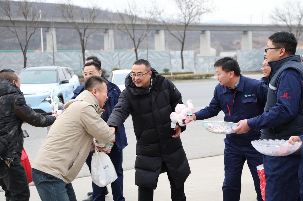 開工迎新現場,所屬企業全體班子成員身著工裝、列隊相迎,以飽滿的熱情迎接職工返崗,大家在歡聲笑語中感受“家”的溫暖與團隊的力量,為新一年的奮斗征程注入強勁動力。公司精心準備了迎新禮物,每一份禮物都承載著企業對職工辛勤付出的感激與祝福。班子成員帶領中層干部將這份心意送到每位員工手中,不僅拉近了企業與職工之間的距離,也讓每一位員工深切感受到了歸屬感與榮譽感。
