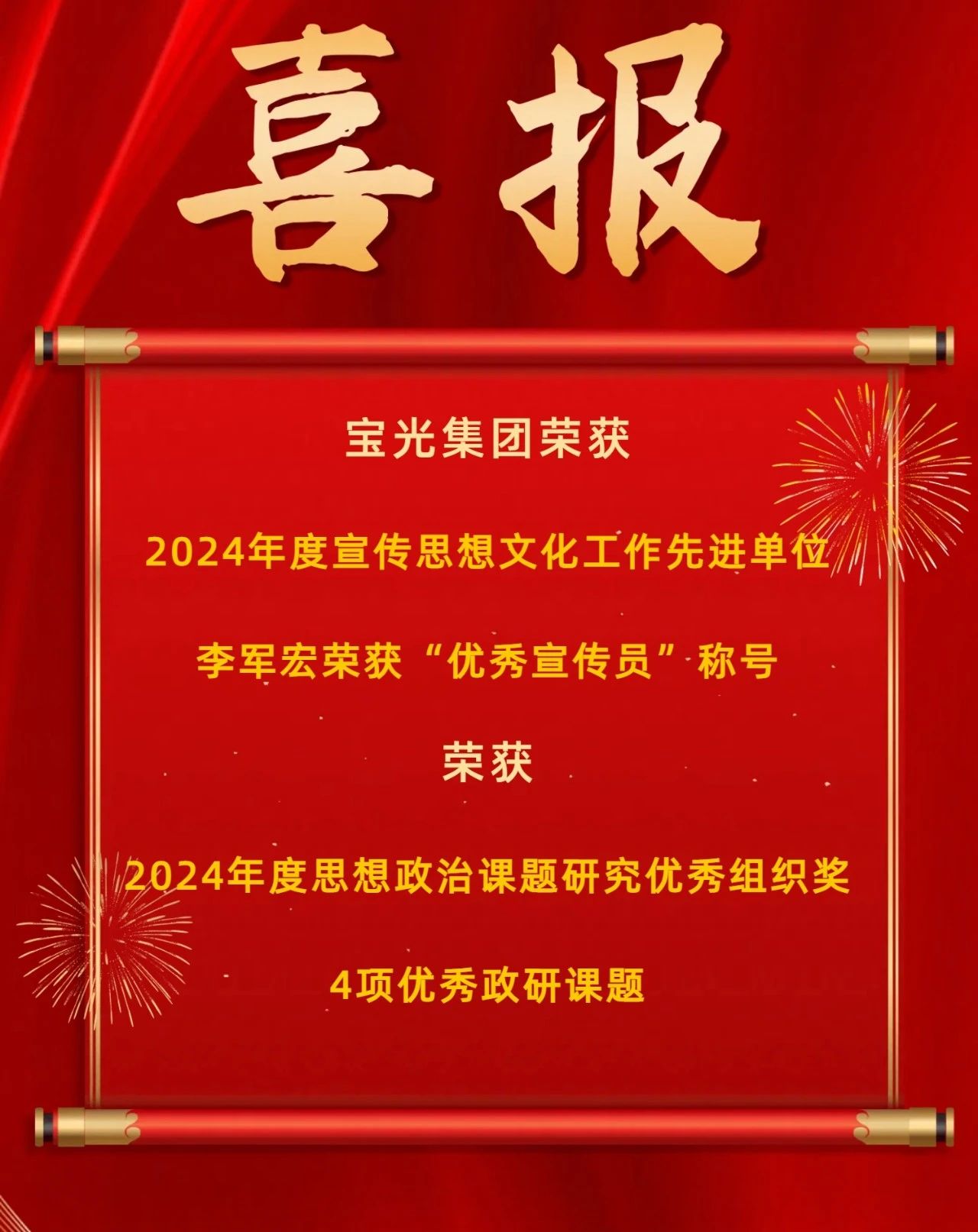 寶光集團黨委將認真學習貫徹習近平總書記關于宣傳思想文化工作的重要講話精神,堅持把思想文化工作作為黨的建設的重要任務抓緊抓實抓好,進一步做好企業宣傳思想文化工作的理論研究和探索實踐,形成具有可應用、能指導的研究成果,為寶光集團改革發展和宣傳思想文化工作提供理論支撐和智力支持,打造以高質量宣傳思想文化工作推動高質量發展的強勁引擎。