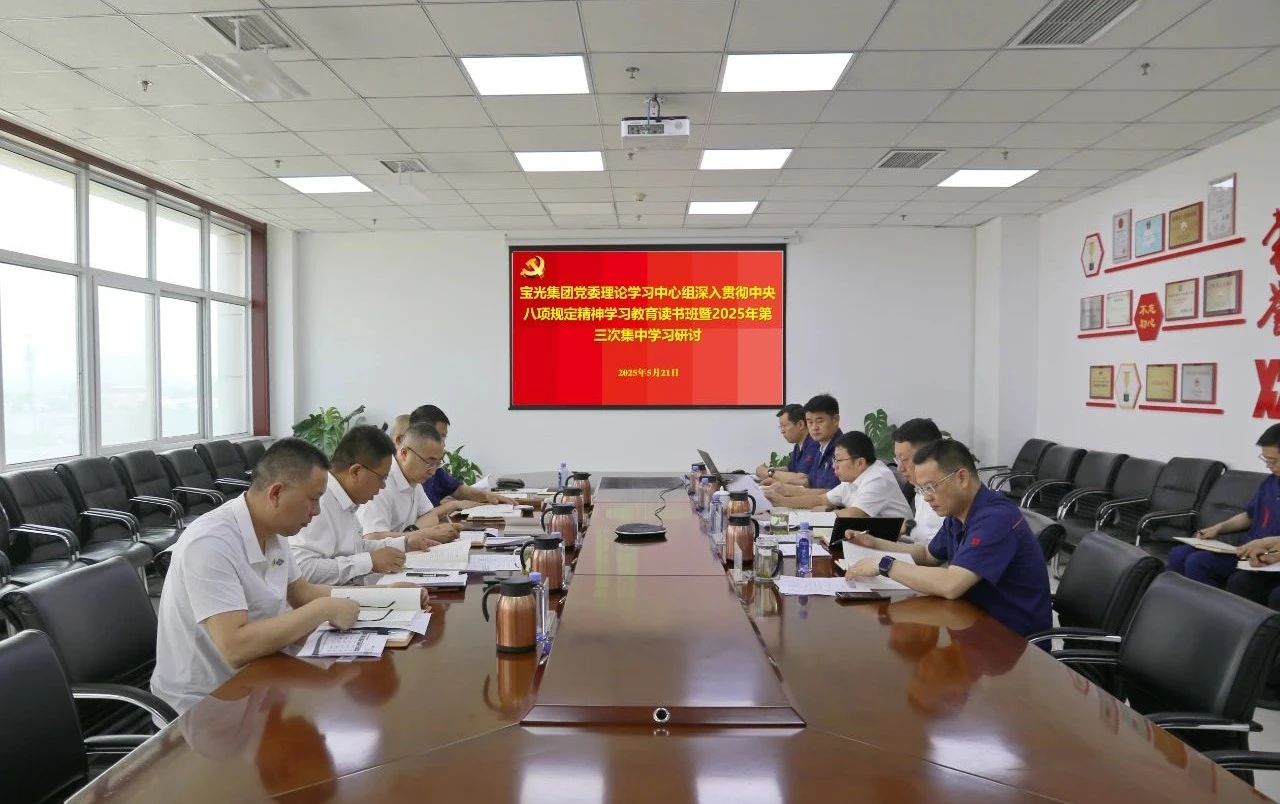 5月21日,寶光集團黨委召開理論學習中心組深入貫徹中央八項規定精神學習教育讀書班暨2025年第三次集中學習研討會。寶光集團黨委書記、董事長謝洪濤主持會議并講話。