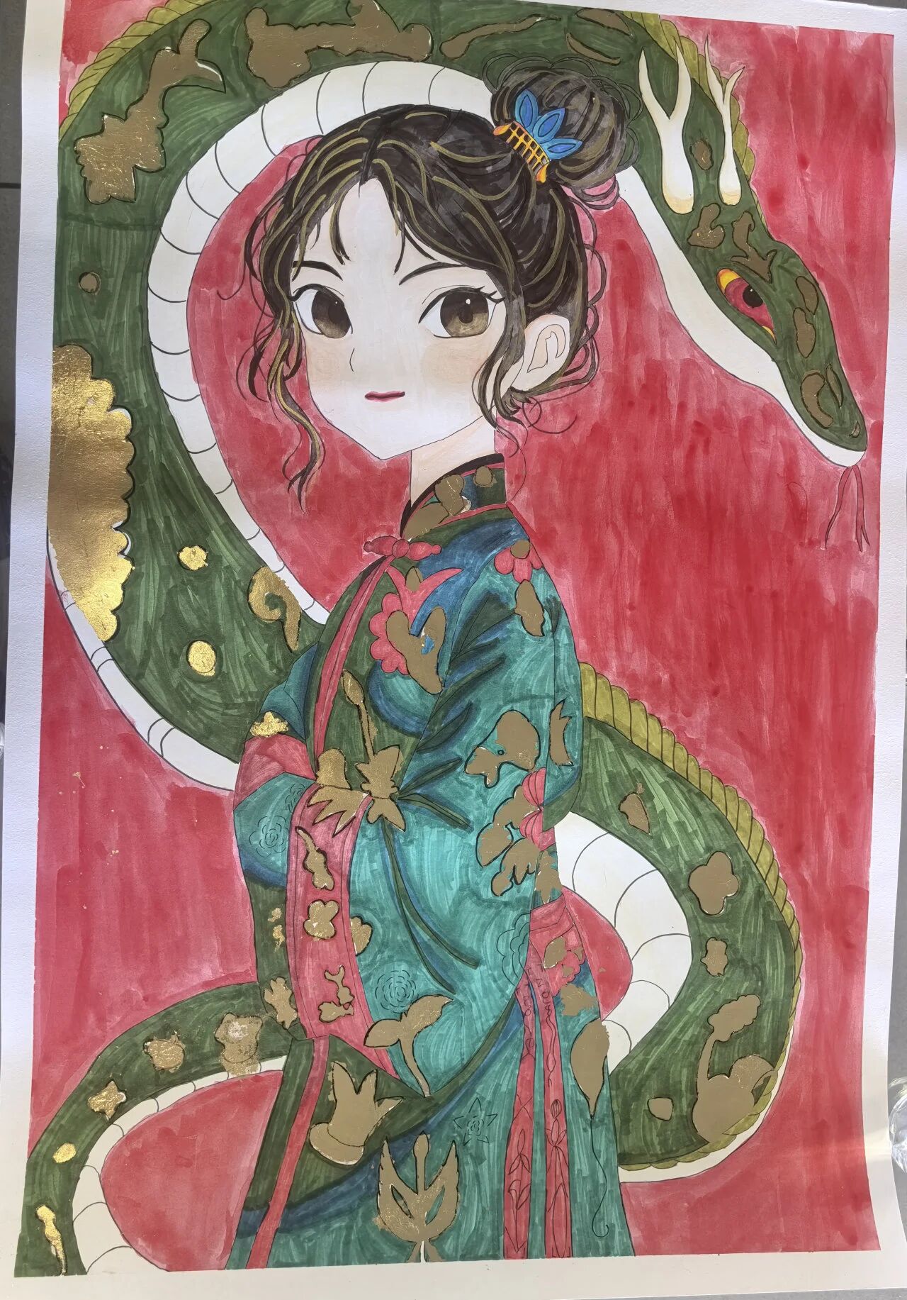 潘寧寧的《靈蛇賀歲》則將靈動的蛇形象與賀歲主題巧妙融合,作品生動活潑、寓意吉祥,二者均成功斬獲書畫類優秀獎。