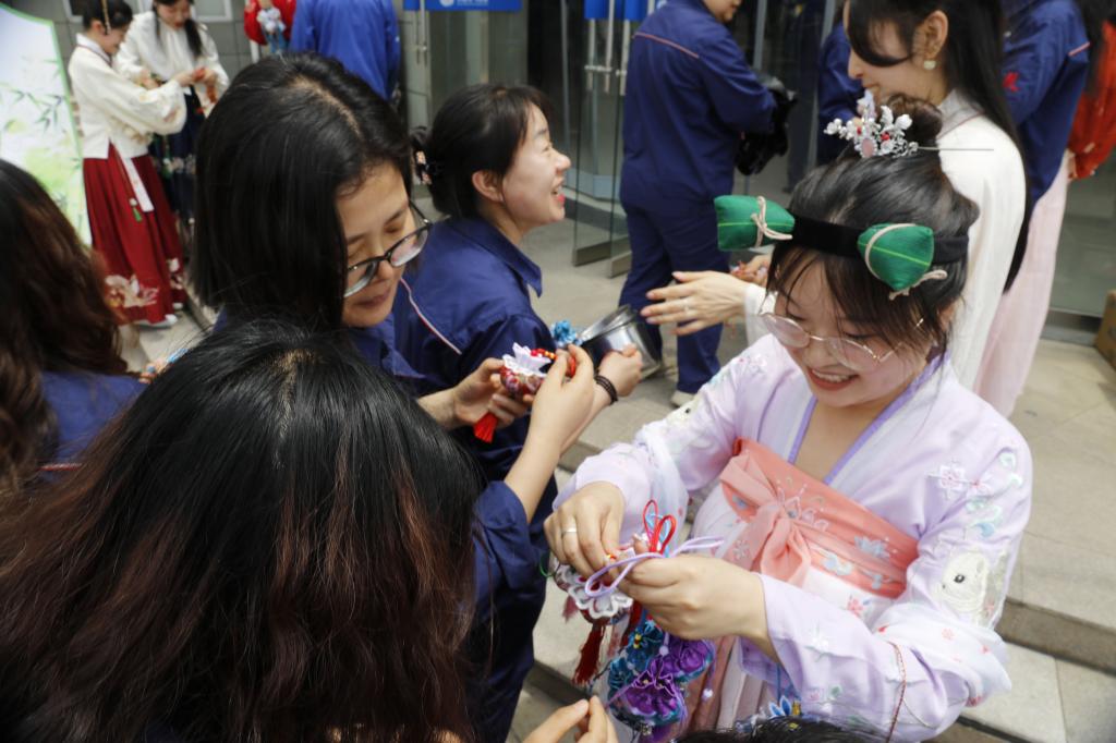 活動現場,別具一格的穿漢服發香包活動正在如火如荼地進行著。志愿者們身著華美的漢服,仿佛是穿越時空而來的古人,為職工們送上香包送去祝福和安康。漢服與香包的結合,不僅讓職工感受到了傳統文化的魅力,也讓人們在忙碌的工作中找到了一份寧靜和美好。